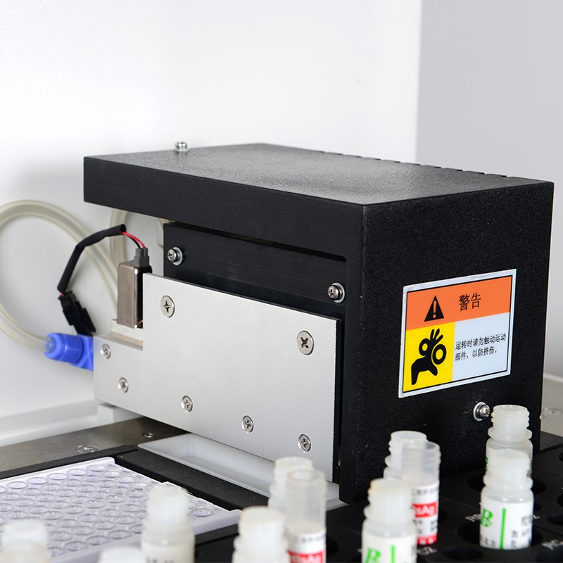 一、全自動完成ELISA實驗,包括標本分配、試劑加注、振蕩、孵育、洗板、讀數。
