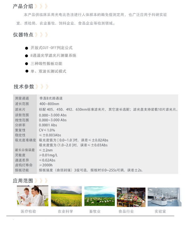 8. 吸光度準確度:吸光度值為[0.0~1.0]時,誤差≤±0.02Abs