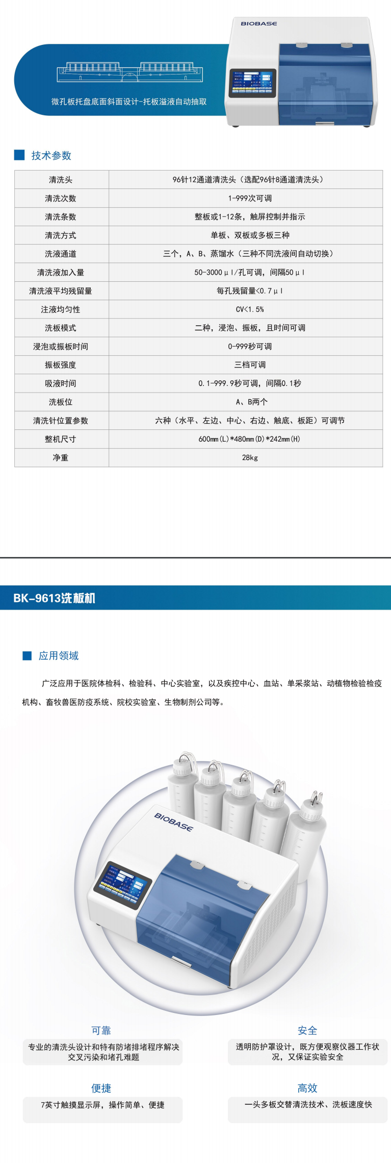 每孔殘留量<0.7μ l,保證清洗干凈徹底 |
