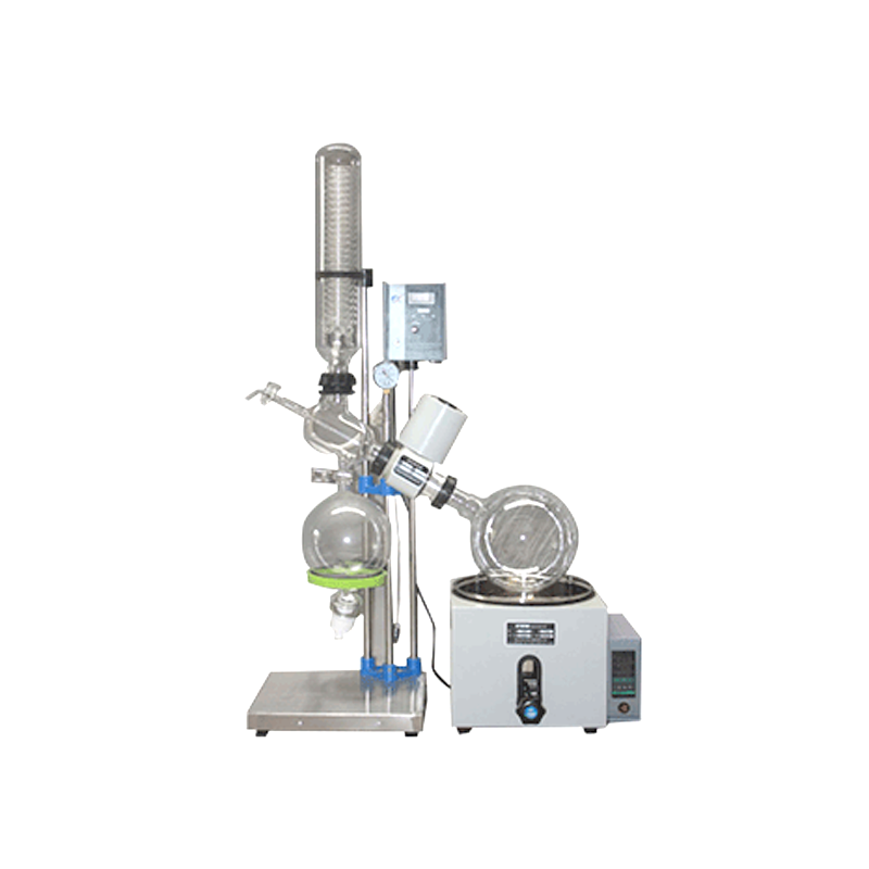 蒸發瓶恒速旋轉,水浴鍋恒溫加熱,在此條件下:物料在蒸發瓶內壁形成大面積均勻薄膜快速蒸發,在真空條件下可以提高蒸發效率(需連接真空裝置),溶媒蒸汽經玻璃冷凝盤管時冷卻成液體(需連接冷卻裝置),回收于收集瓶。