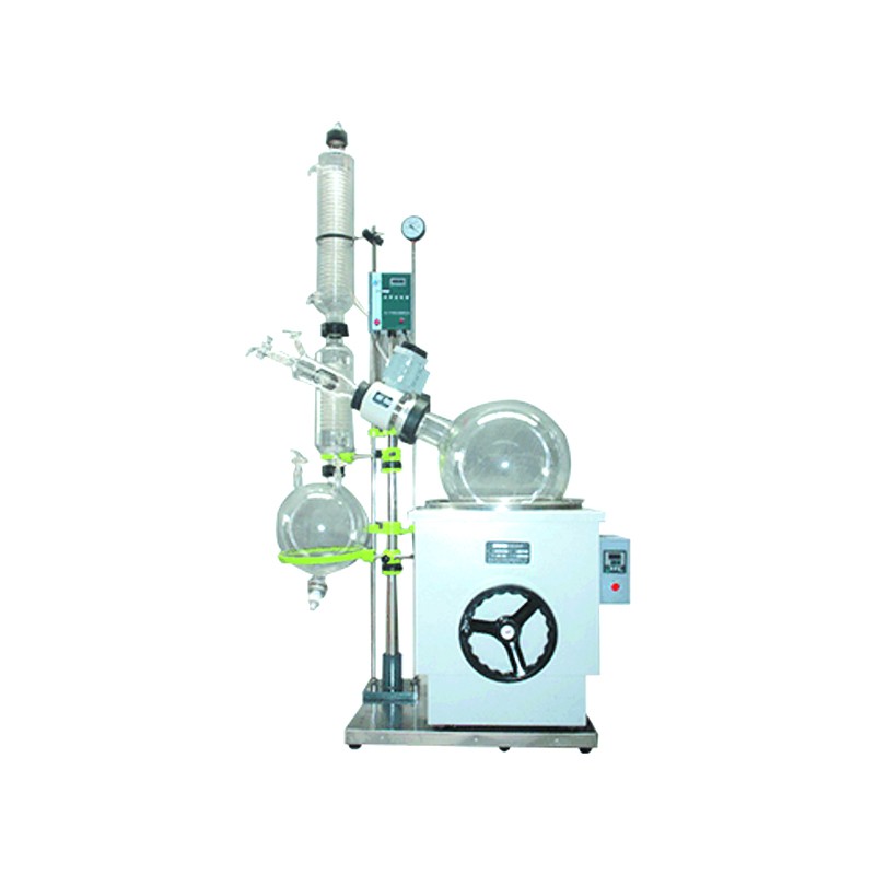 蒸發瓶恒速旋轉,水浴鍋恒溫加熱,在此條件下:物料在蒸發瓶內壁形成大面積均勻薄膜快速蒸發,在真空條件下可以提高蒸發效率(需連接真空裝置),溶媒蒸汽經玻璃冷凝盤管時冷卻成液體(需連接冷卻裝置),回收于收集瓶。